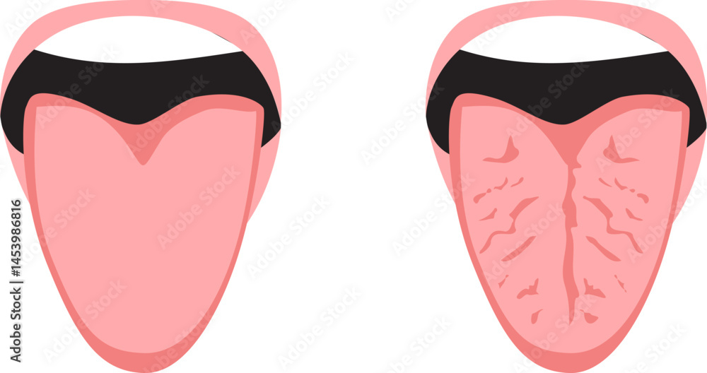 Fototapeta Cartoon illustration showing a close-up comparison between a healthy tongue and a fissured cracked tongue