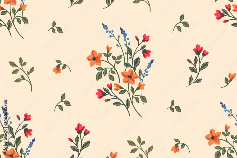 Fototapeta Seamless floral pattern, elegant ditsy print with hand drawn wild flowers