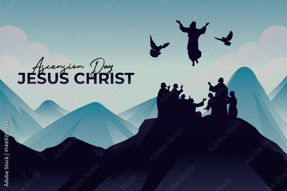 Fototapeta Ascension Day design with Jesus Christ in the sky vector illustration