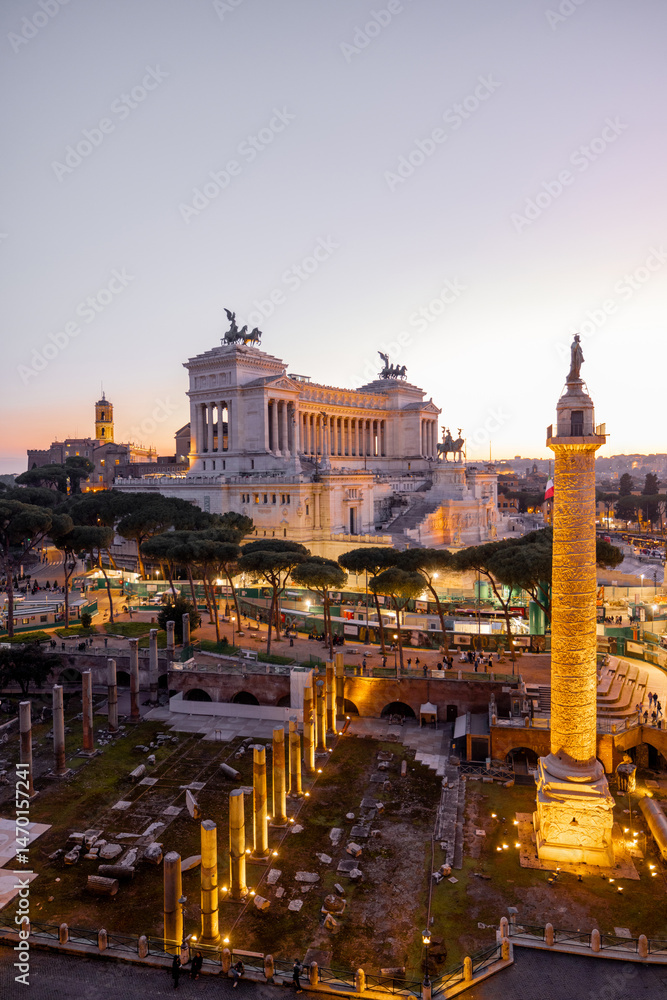 Fototapeta Magnificent sunset view of Trajans Column and the Altare della Patria in Rome