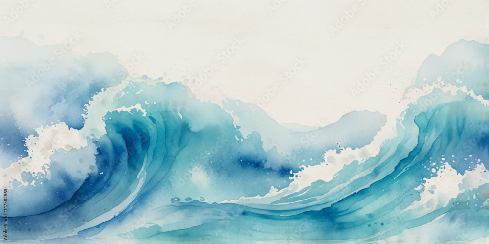 Fototapeta Watercolor surface ocean water wave, seamless blue water ocean wave background