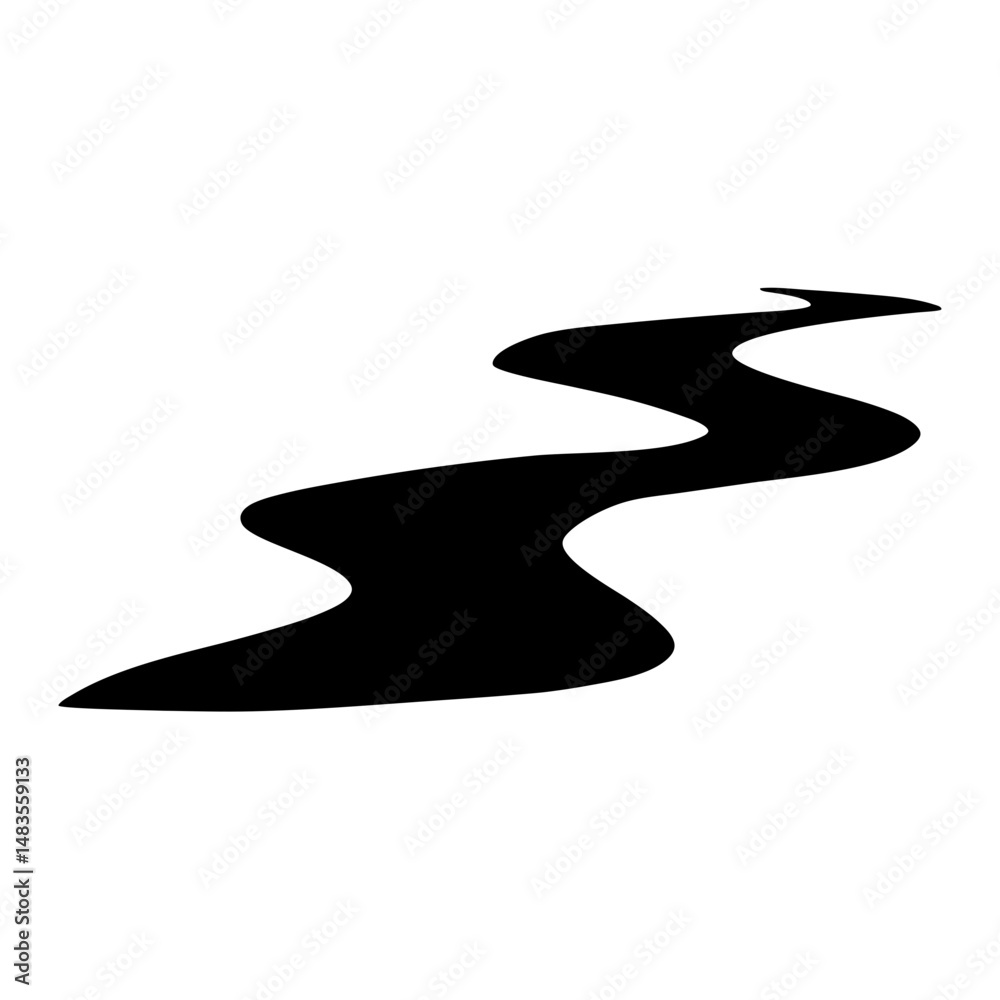 Fototapeta Abstract Black Silhouette of a Winding River or Creek Path Illustration