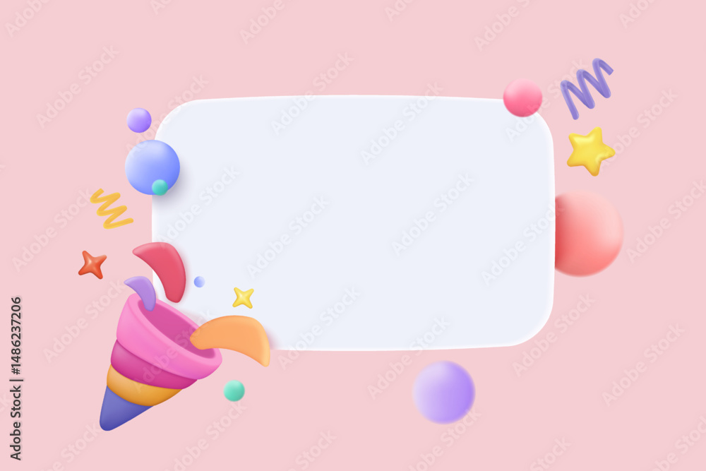 Fototapeta 3d party poppers with flying confetti for announce promotion in new year