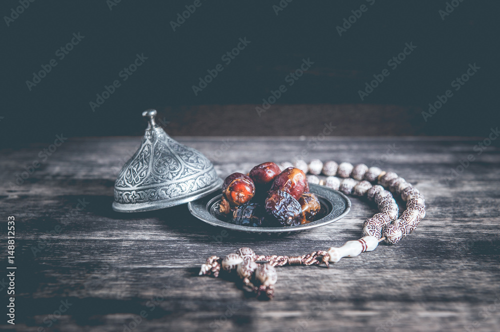 Fototapeta Date-palm is placed on silver