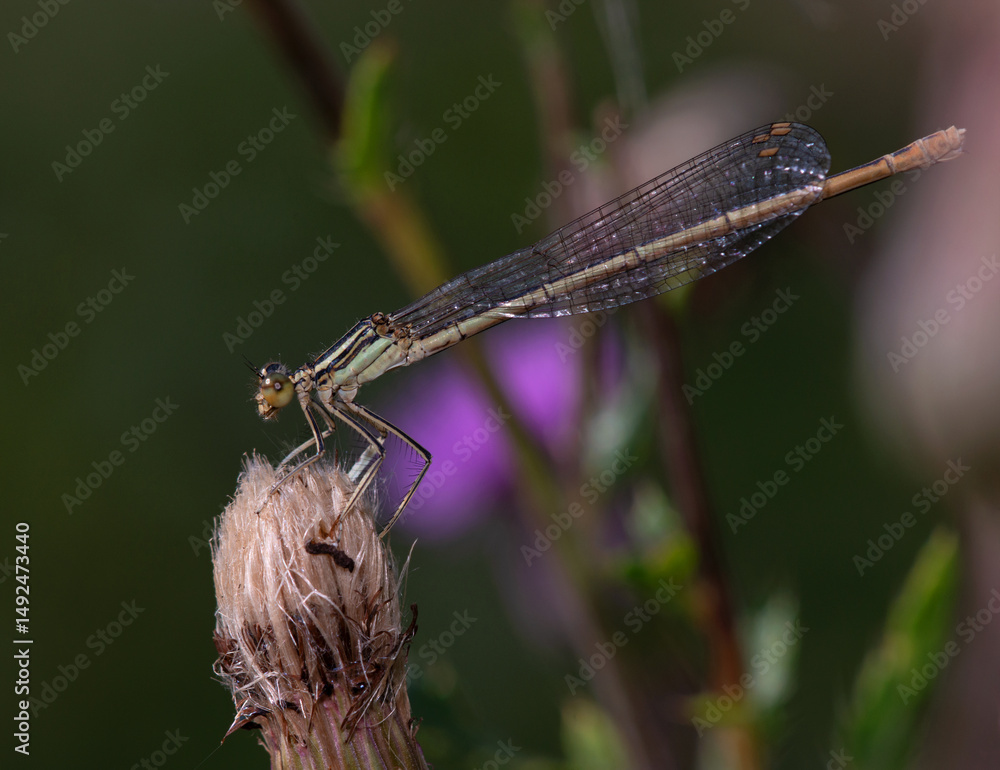 Fototapeta damselfly damsel or narrow wings Zygoptera sitting on a plant