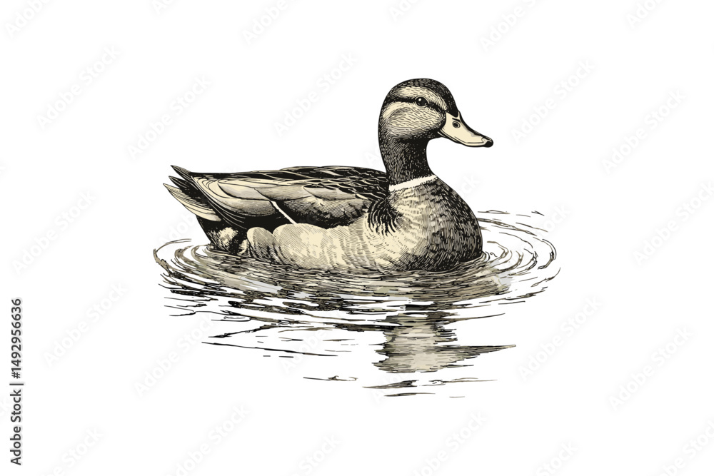 Fototapeta Vintage Bird Illustration, Engraving of Duck in Water, Ornithological Print, Det