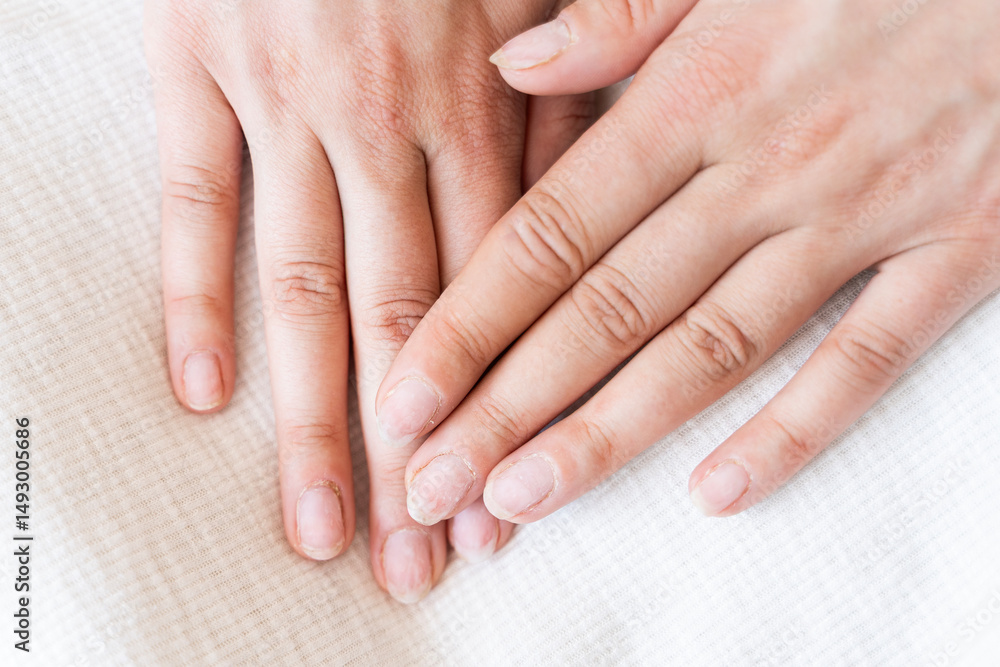 Fototapeta Damaged fingernails from gel polish