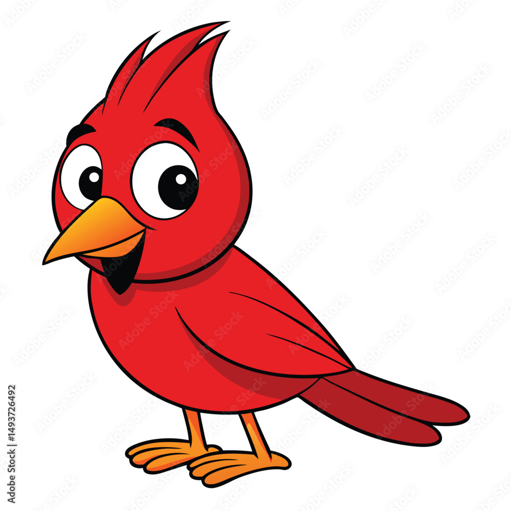 Fototapeta Cheerful red cardinal cartoon bird smiles while standing against a clean white b