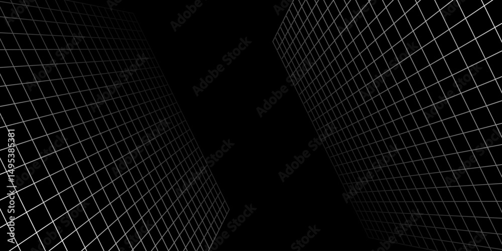 Fototapeta Minimalist 3D grid frame vector tunnel illustration retro futurism brutalism pos