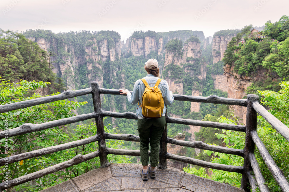 Fototapeta Young female tourist enjoying mountain view, the Zhangjiajie National Forest Pa