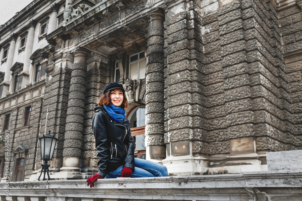 Fototapeta Beautiful young woman walking in winter in Vienna, Austria