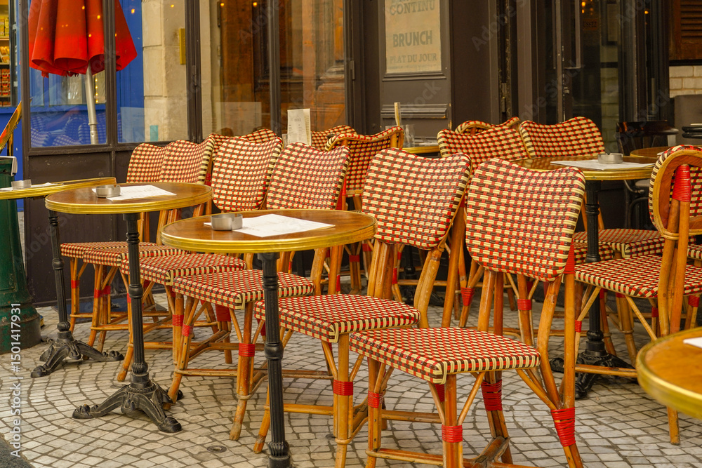 Fototapeta parisian cafe and bistro terrace, Montorgueil district