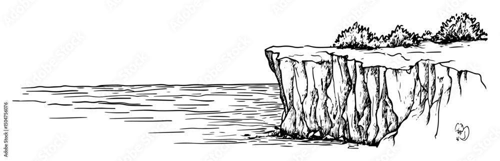 Fototapeta sea cliff with trees and ocean in coastal sketch style