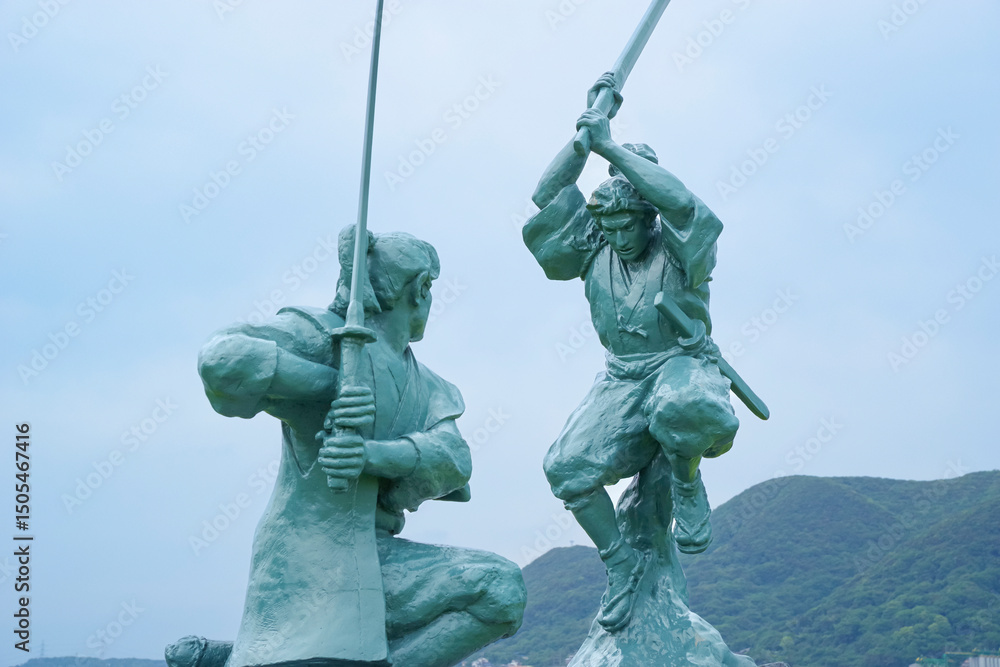 Fototapeta 巌流島にある武蔵・小次郎像