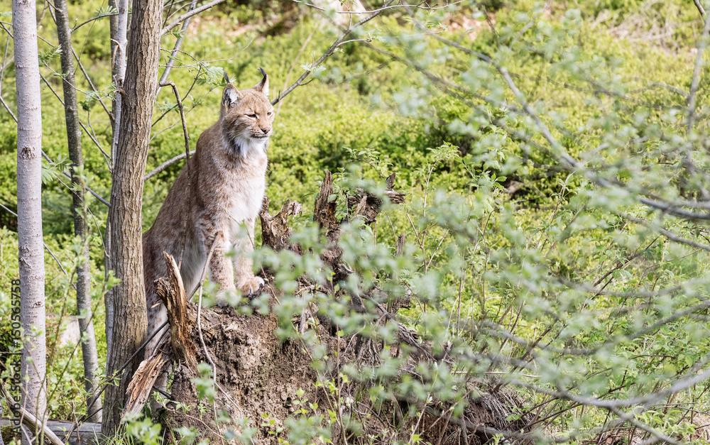 Fototapeta Euroasian lynx in the park in eastern germany, european wild cats, animals in eu