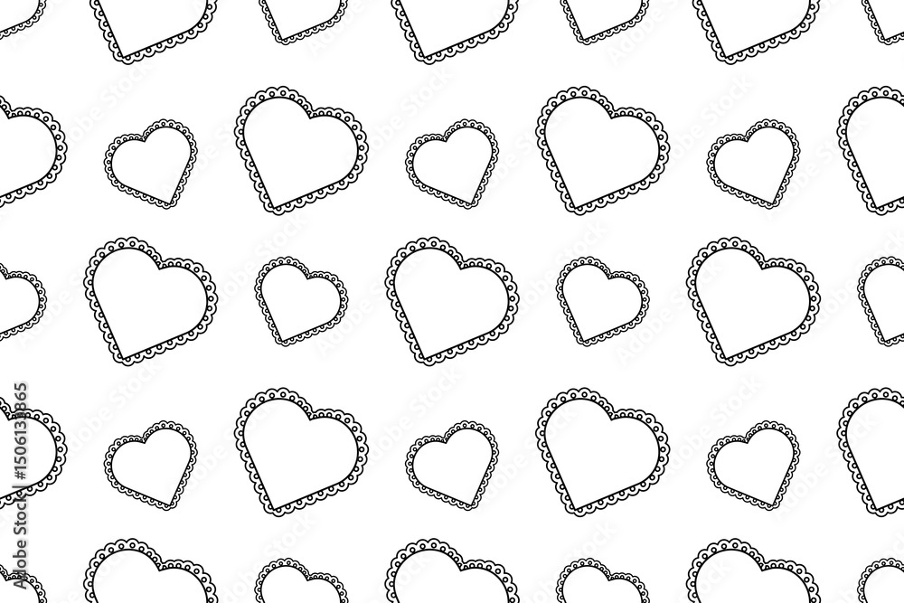 Fototapeta Seamless pattern, coloring page with lace trimmed hearts