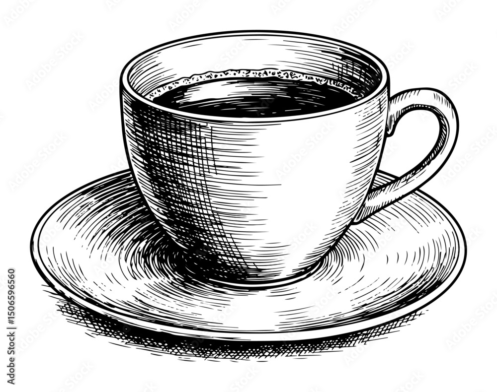 Fototapeta vintage tea cup on saucer – hand drawn hot drink vector