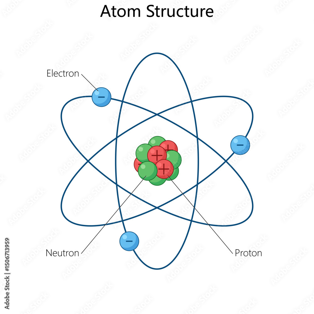 Fototapeta atom showing the nucleus with protons and neutrons, and electrons orbiting in shells around it diagram hand drawn schematic vector illustration
