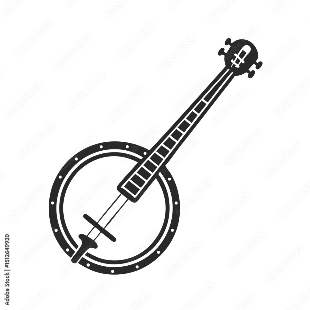 Fototapeta Banjo musical instrument in monochrome style isolated on white background vector illustration