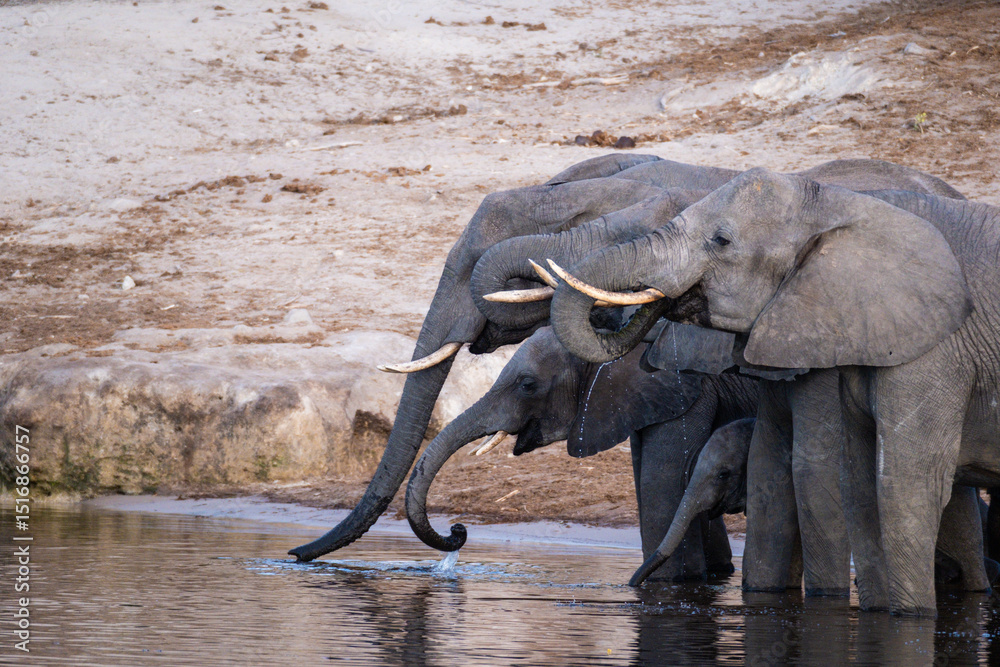 Fototapeta A family of elephants ordered by size, the little one tucked safely below