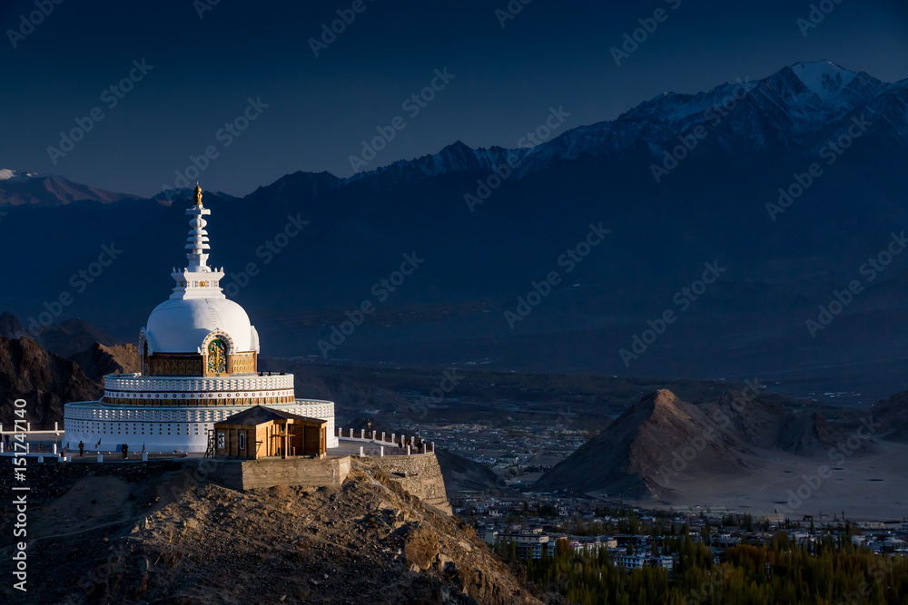 Fototapeta Buddhist stupa in Leh, Indian Himalaya. Diskit, Ladakh, India