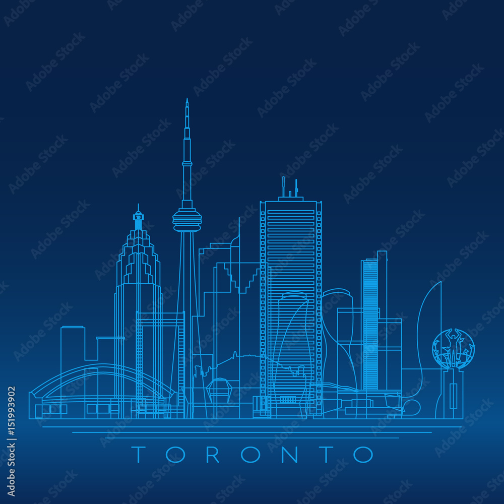 Fototapeta Toronto skyline, detailed silhouette. Blue linear style.