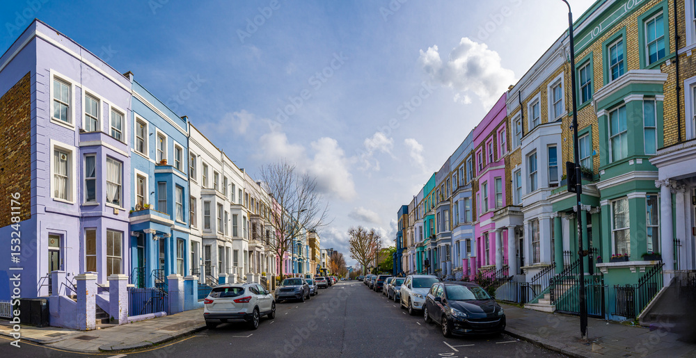 Fototapeta Colorful houses lining a street in notting hill, london