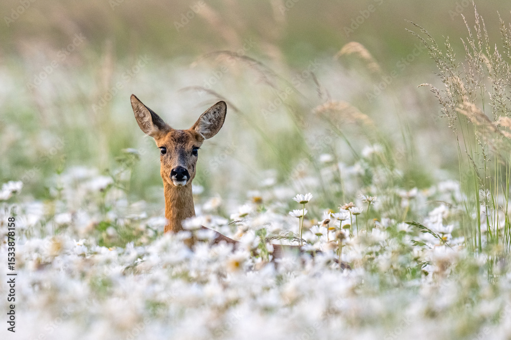 Fototapeta Chevreuil dans le champ de marguerites