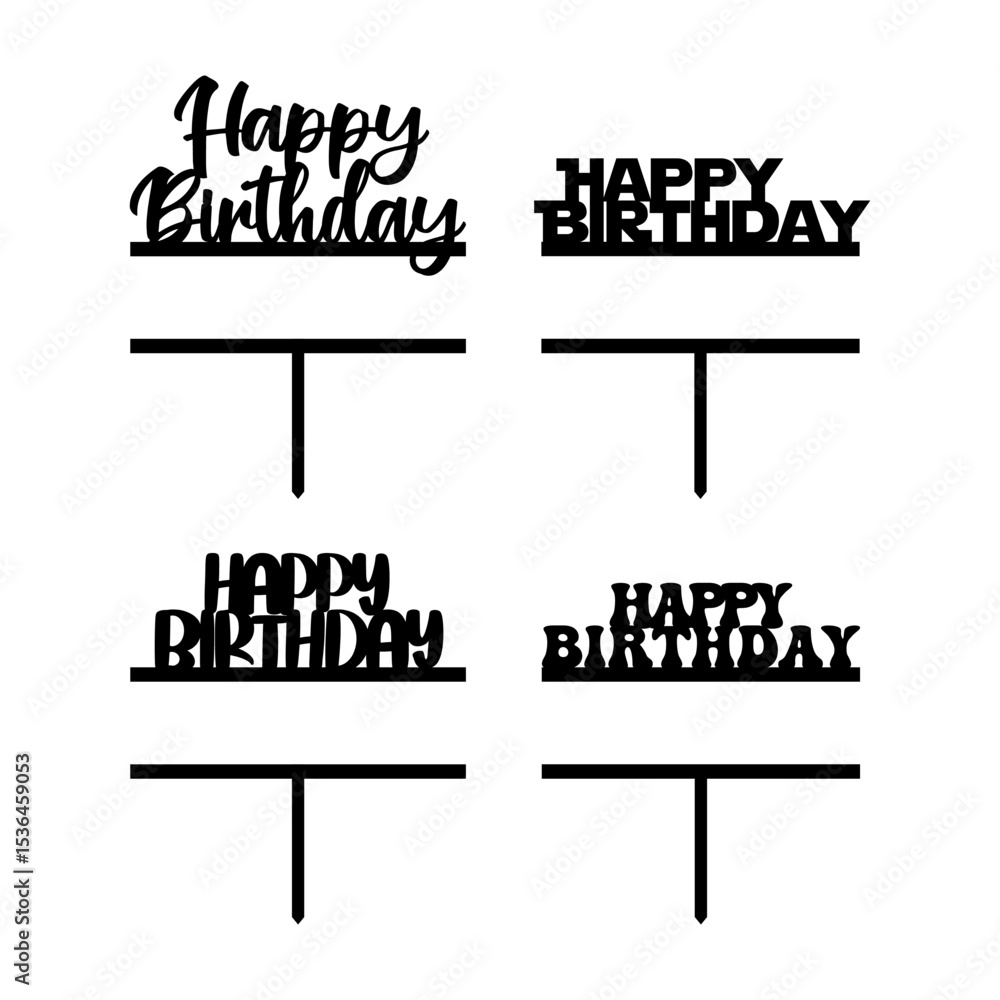 Fototapeta Happy Birthday Cake Topper Designs Set