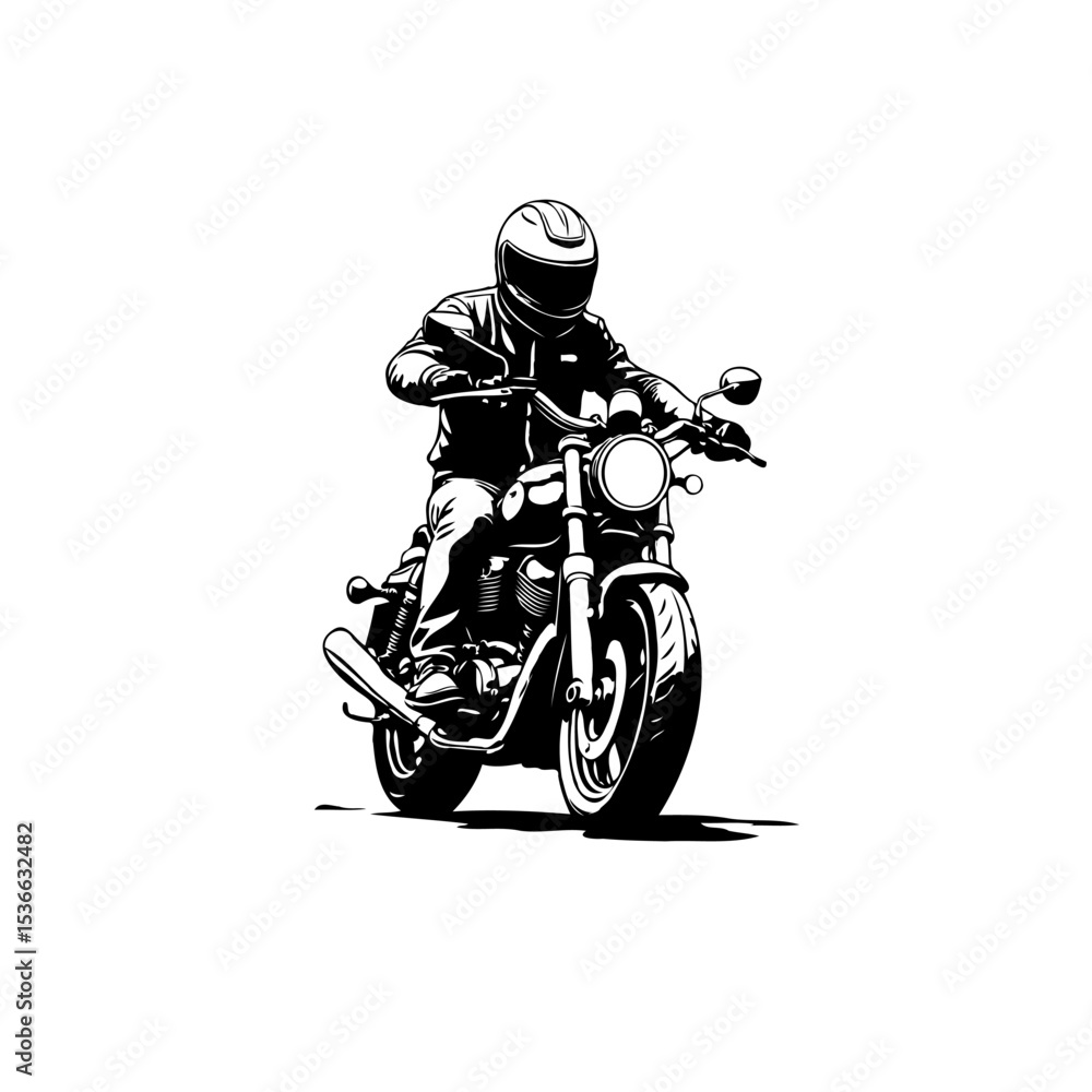 Fototapeta Monochrome vector illustration of a motorcyclist riding a vintage motorcycle