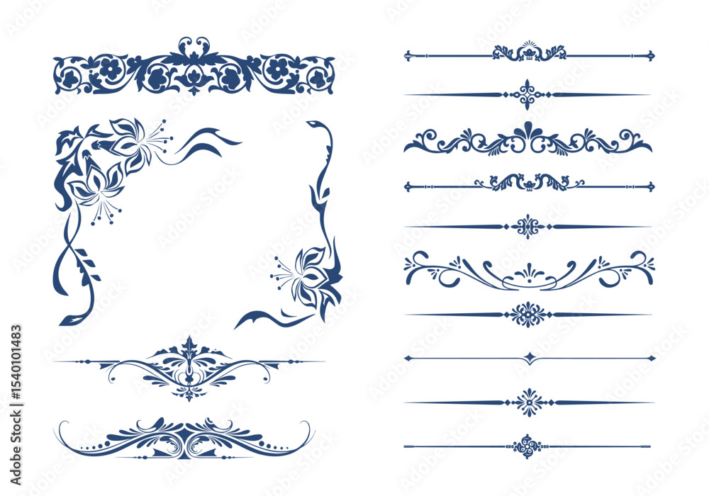 Fototapeta Vintage Ornamental Border and Frame Collection Decorative Floral & Geometric Elements