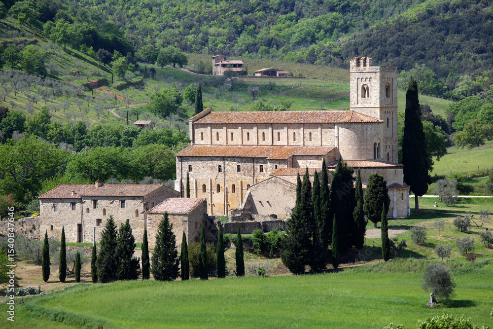 Fototapeta Abbey of Sant'Antimo, the Benedictine monastery in the comune of Montalcino, Tus