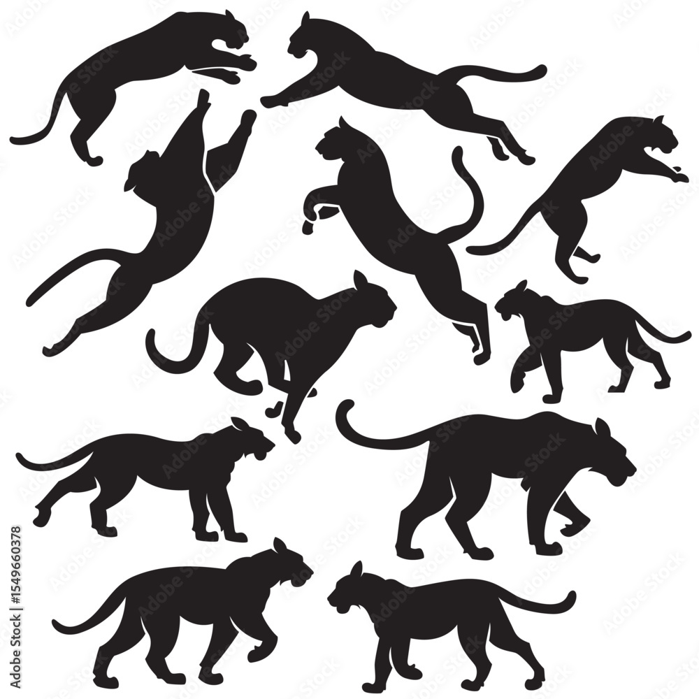 Fototapeta A set of black Tiger silhouette in various dynamic poses, perfect for use in wil