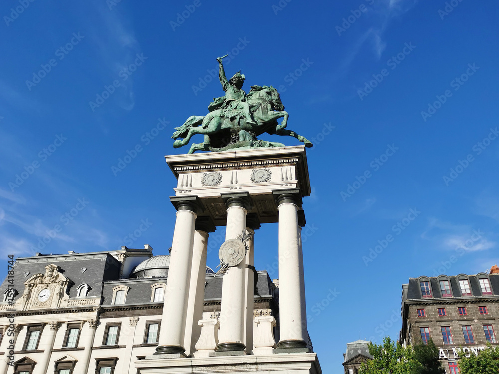 Fototapeta Statue of Vercingetorix by Bartholdi stands tall in Place de Jaude, Clermont-Fer