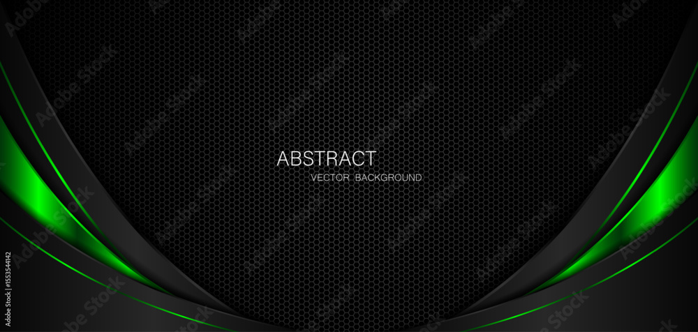 Fototapeta Abstract black and green curves on dark steel mesh background with free space for design