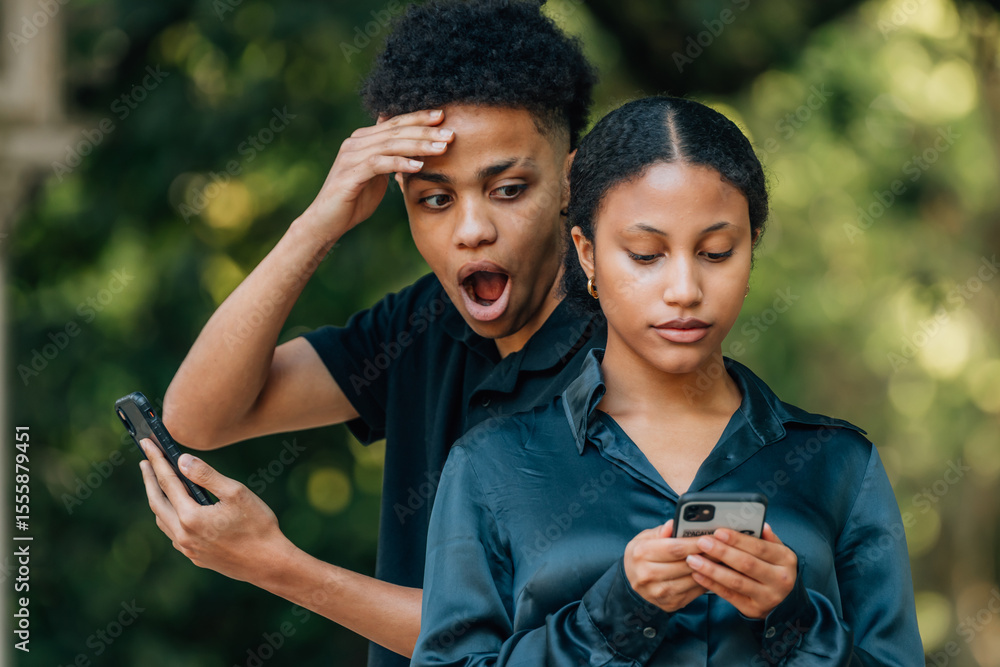 Fototapeta couple spying on cell phone