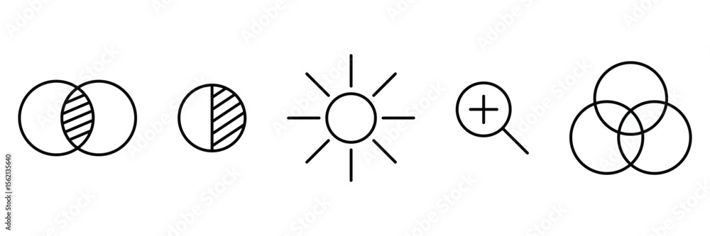 Fototapeta Image editor tool icons with brightness contrast zoom blend shape overlap filter settings vector symbol flat design illustration