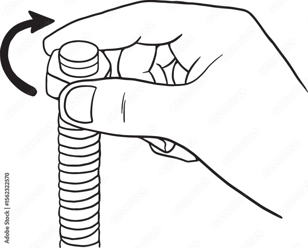 Fototapeta Line art of a hand twisting a cap, accompanied by a curved arrow indicating the turning motion