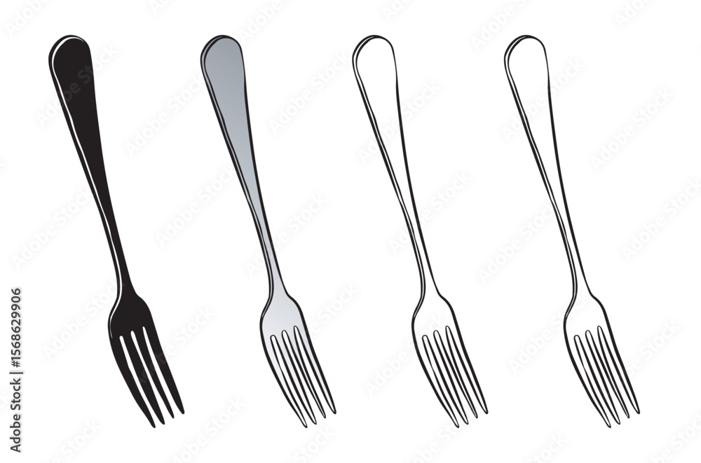 Fototapeta Set of four forks in black, gray and white colors