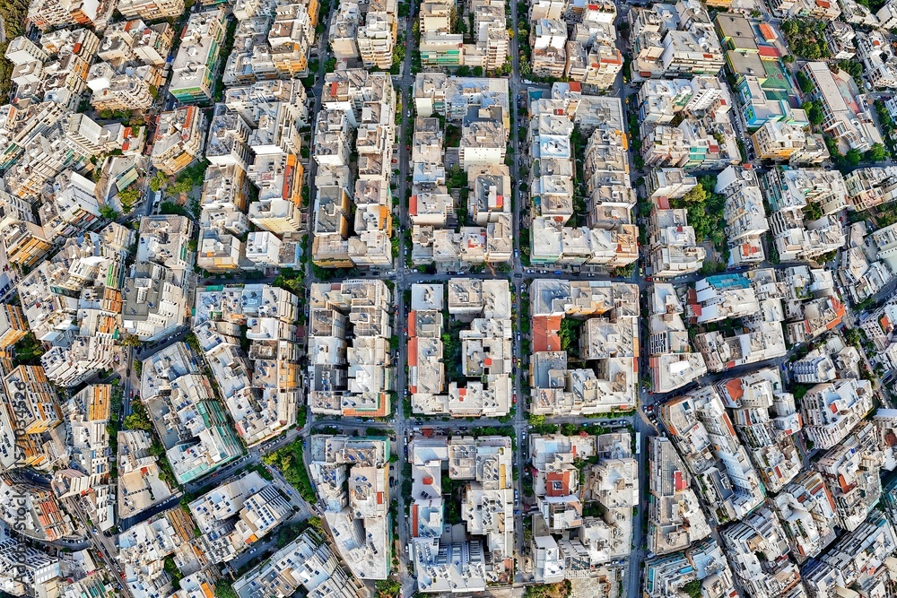 Fototapeta Aerial view of Athens Urban Architecture - Geometric street network