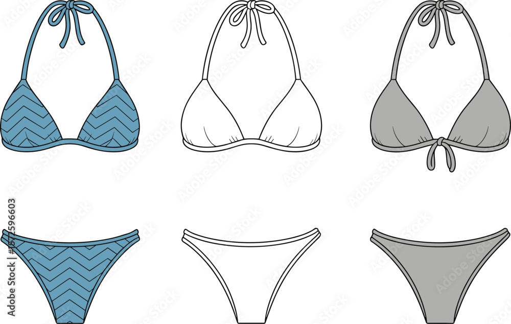 Fototapeta Bikini fashion design, vector swimsuit sketch, summer swimwear template, CAD dra