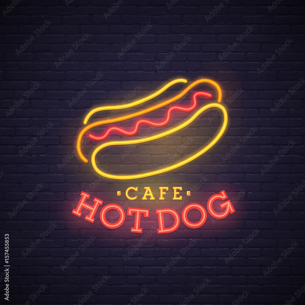 Fototapeta Hot Dog neon sign. Neon sign, bright signboard, light banner