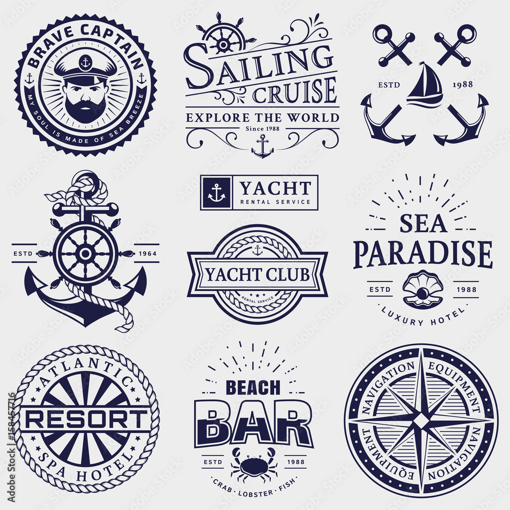 Fototapeta Sea and nautical logos isolated on white background.