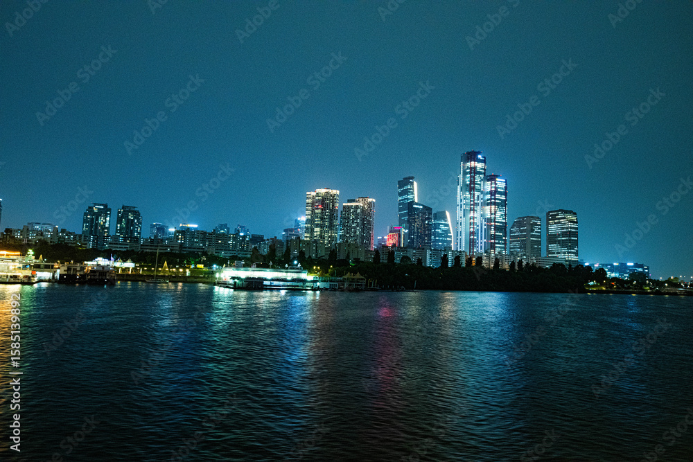 Fototapeta Seoul Cityscape Reflected on Han River at Night