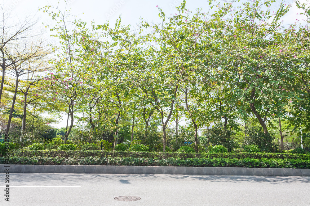 Fototapeta street and green trees of Zhujiang park in spring