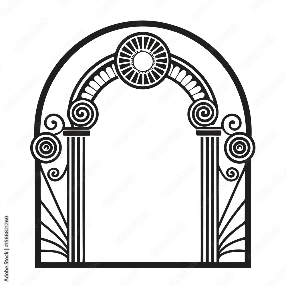 Fototapeta An art deco architectural archway design with decorative columns, swirling motif