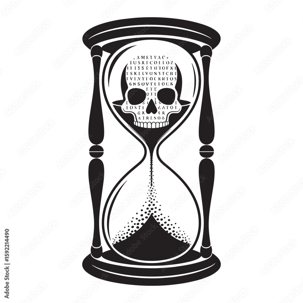 Fototapeta A skull inside an hourglass, representing the passage of time with a morbid twist