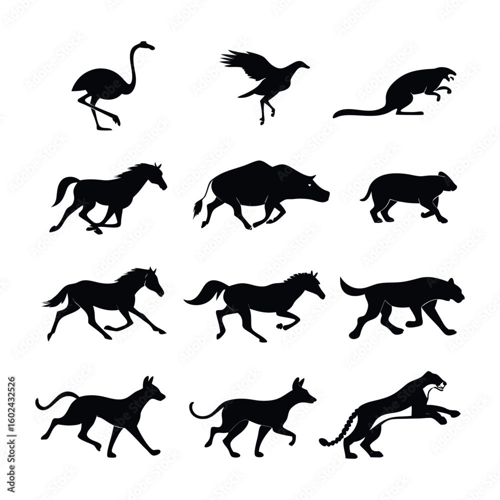 Fototapeta Silhouettes of Fast-Running and Jumping Animals