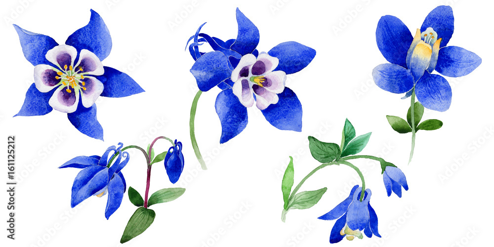 Fototapeta Wildflower Blue aquilegia flower in a watercolor style isolated.