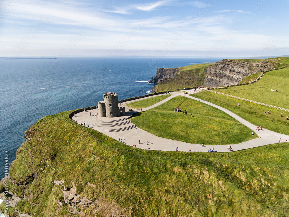 Fototapeta World famous birds eye aerial drone view of the Cliffs of Moher in County Clare, Ireland